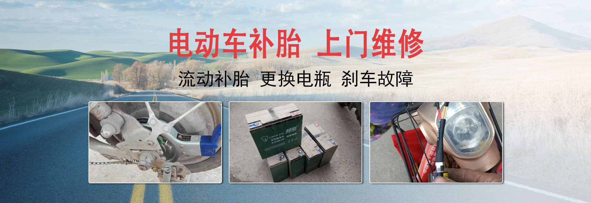 我们是一家专业从事玉树电动车上门维修、玉树电动车补胎换胎、玉树电动车换电瓶、玉树电动车刹车维修、玉树电动车电路检修、玉树三轮车救援的电动车维修服务公司,已从事电动车维修服务行业多年。得到了广大客户的一致好评。公司员工都经过严格的技术考核与培训,拥有丰富的电动车维修服务经验,以及时、专业、热情的服务,确保施救工作,快速、专业、安全的完成。做到随时随地地为客户提供全年365天24小时上门维修服务。服务范围覆盖全市各个区域。 公司秉承“用户至上,效率第一”的企业宗旨,全天候24小时待机为您服务。